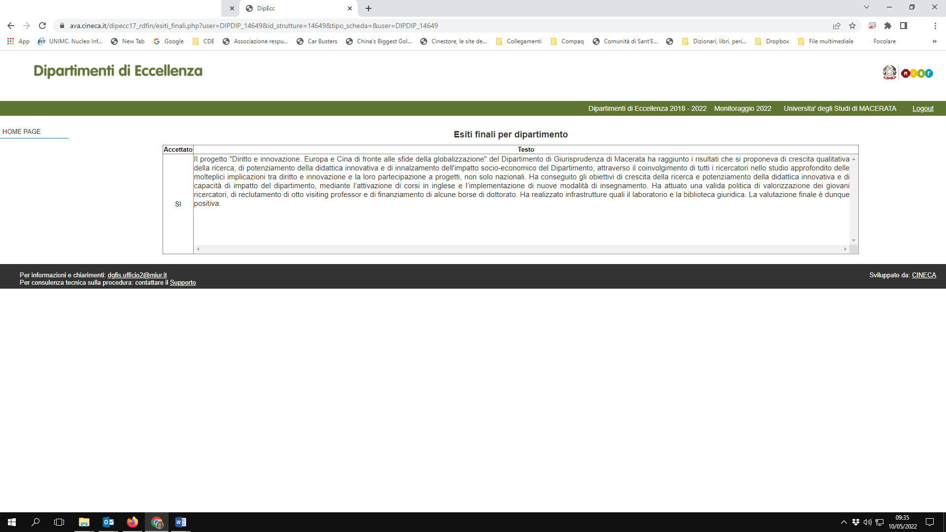 Il Progetto presentato dal Dipartimento di Giurisprudenza dell’Università degli studi di Macerata si è classificato 2° fra i 15 Dipartimenti di Area 12 - Scienze giuridiche ammessi al finanziamento.