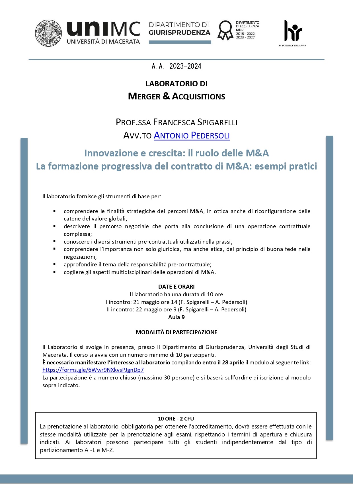 Il Laboratorio si svolge in presenza, presso il Dipartimento di Giurisprudenza, Università degli Studi di Macerata. Il corso si avvia con un numero minimo di 10 partecipanti.